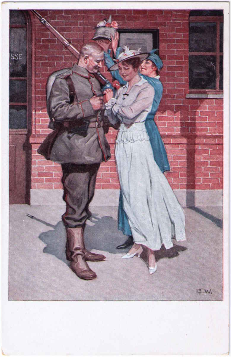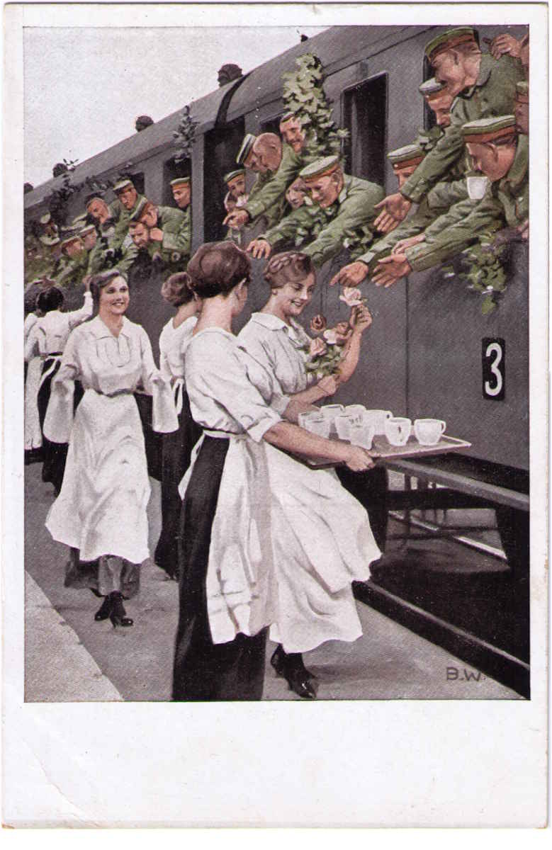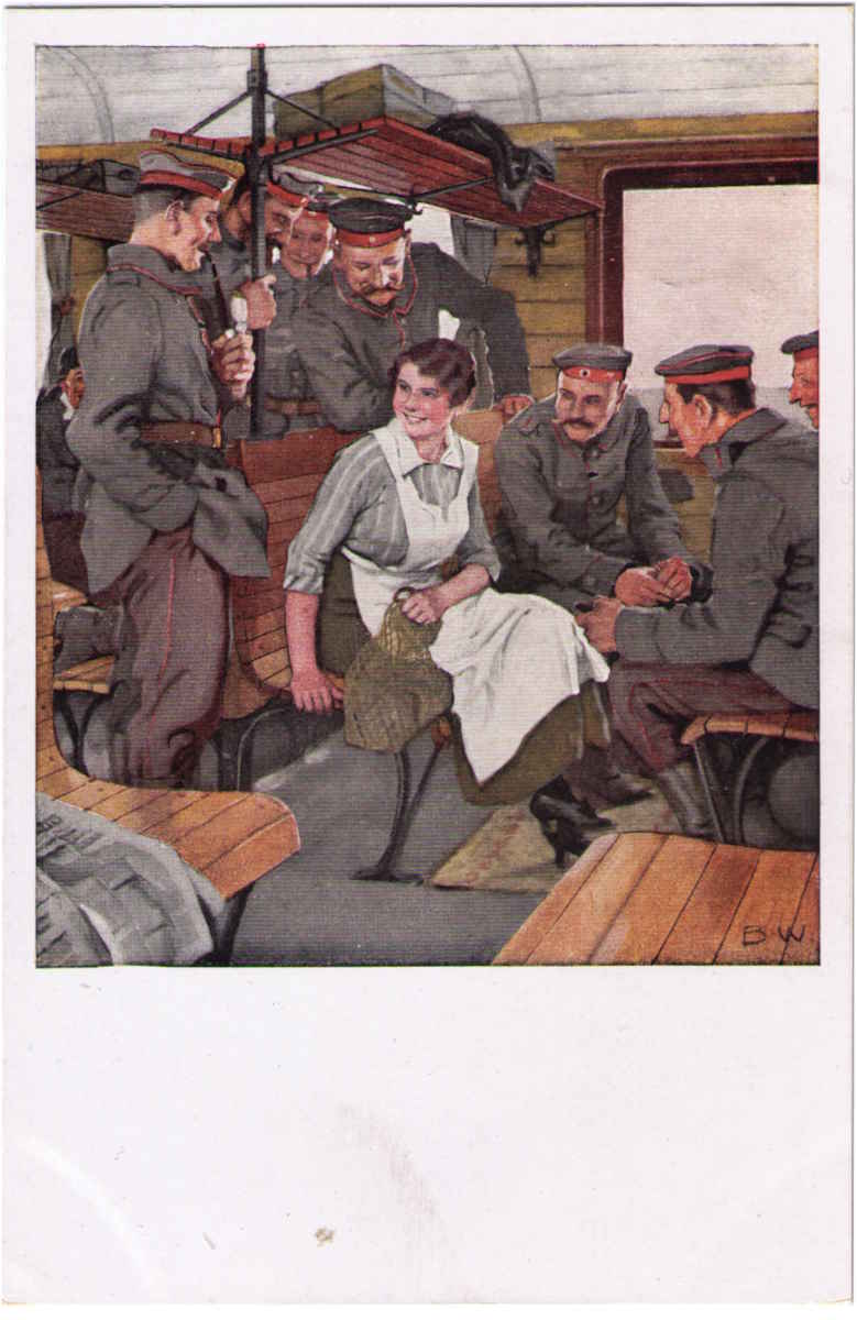 Plakate, Zeitungsartikel und Filme wurden eingesetzt, um Patriotismus zu fördern und den Kriegsgeist zu stärken. In großer Zahl entstanden in Deutschland Kriegs- und Kunstpostkarten, die von der Bevölkerung gesammelt wurden. Diese Postkarten dienten der ideologischen Einstimmung auf Themen wie nationale Einheit, gemeinsamer Kampf gegen den Feind und die enge Verbindung zwischen Front und Heimat.